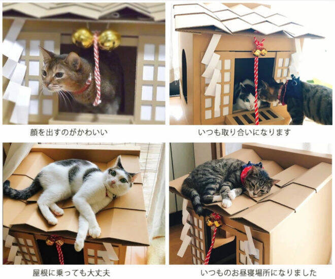 愛猫がねこ神様になっちゃうダンボールハウス ネコ神社ハウス がニャン可愛いよ ライフスタイル Japaaan